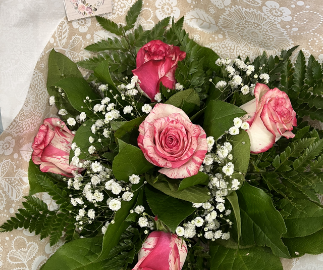5 Roses Magic Times panachées rose et gypsophile, pour une touche tendre et pleine de douceur.